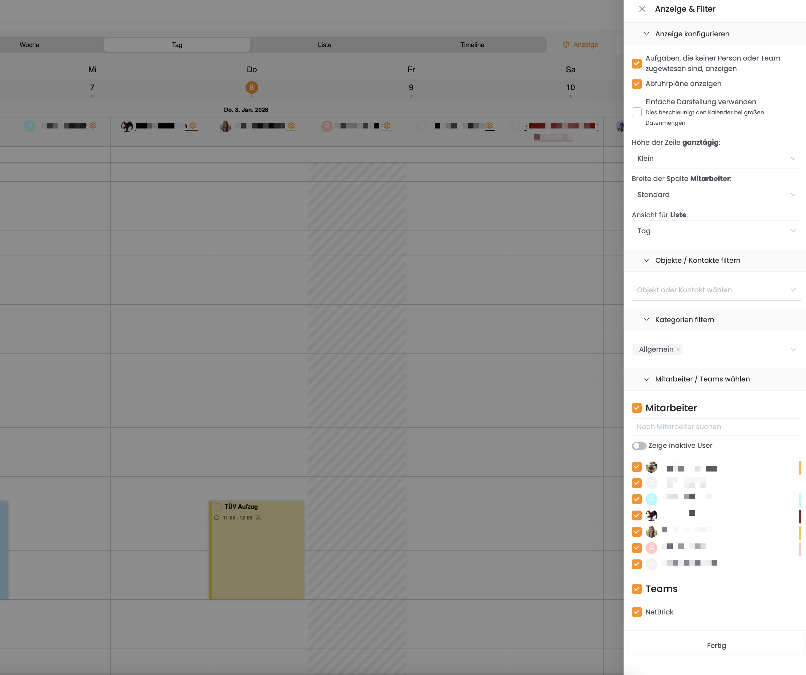 Sie haben die Möglichkeit, den Kalender individuell anzupassen und so Ihre Ansicht auf die eigenen Bedürfnisse abzustimmen.