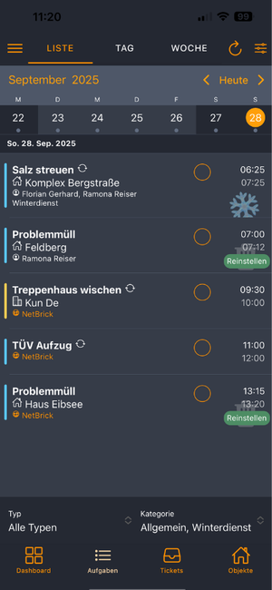 Aufgaben kann man ab dem neuesten Update in Kategorien unterteilen: Allgemein oder Winterdienst.