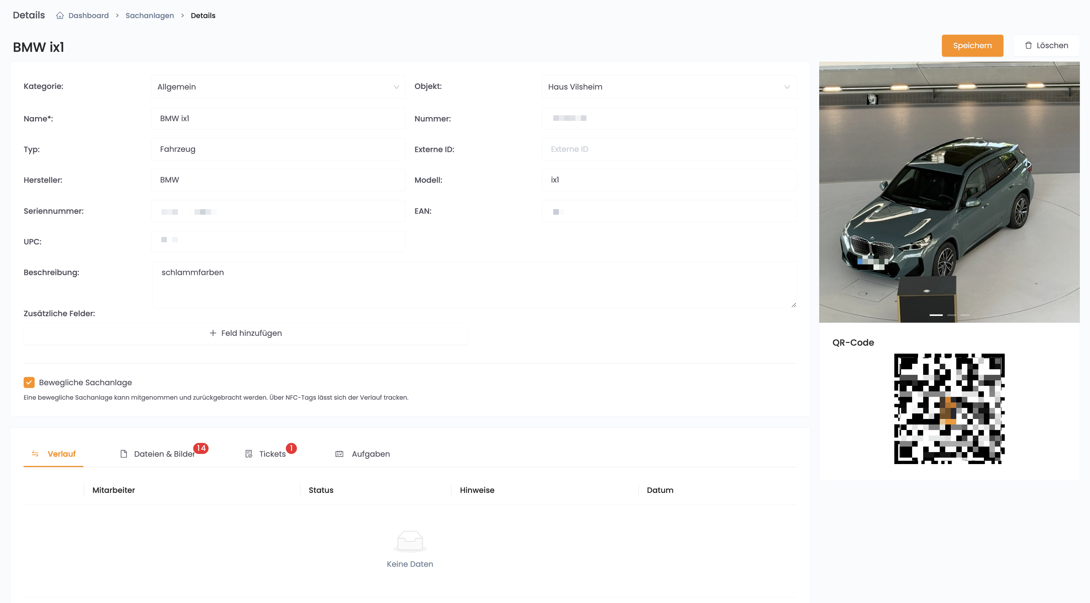 Wird eine Sachanlage als beweglich markiert, kann sie mithilfe eines NFC-Tags verwaltet werden.