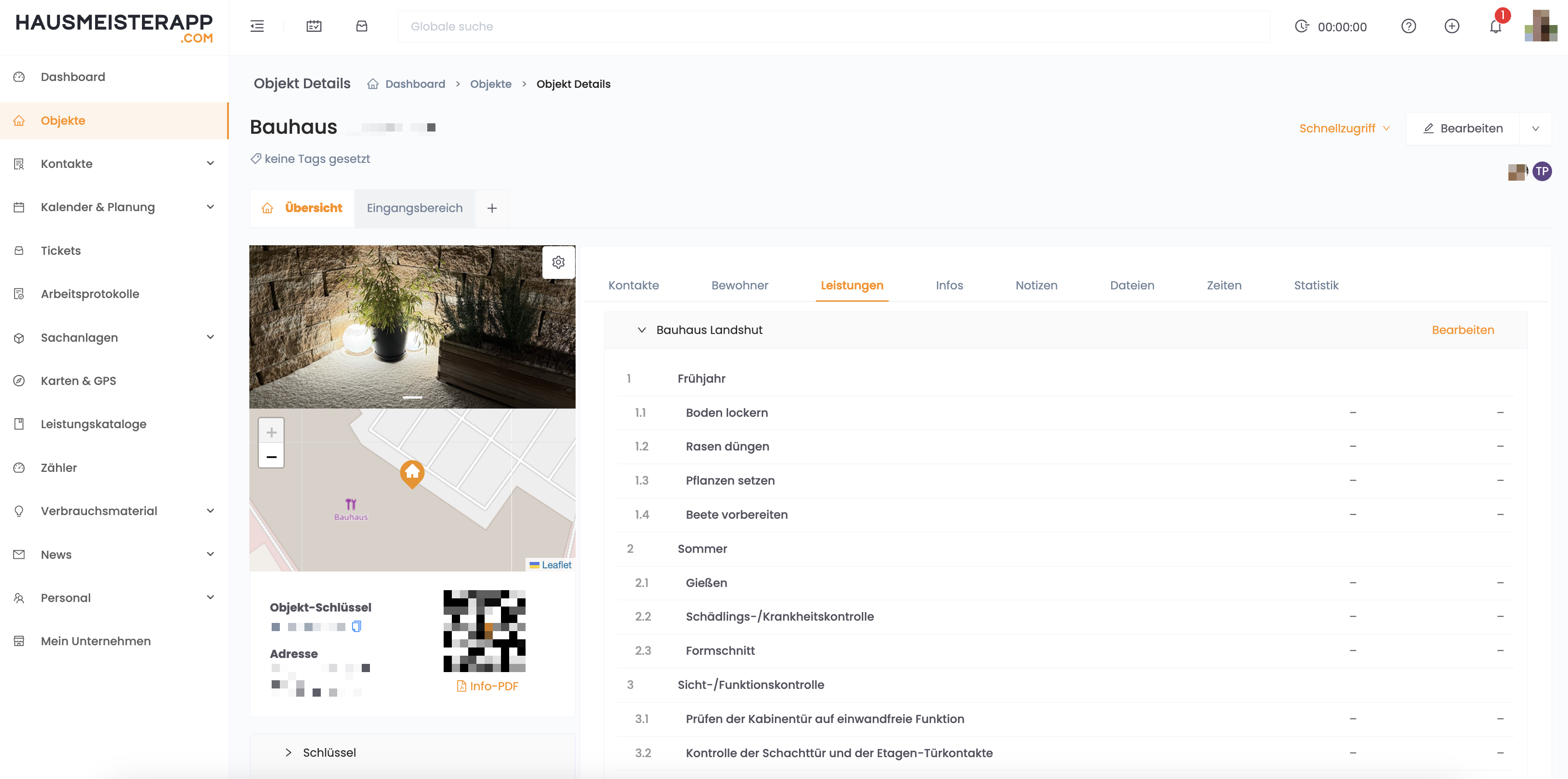 Jedes Objekt hat seinen eigenen Leistungskatalog